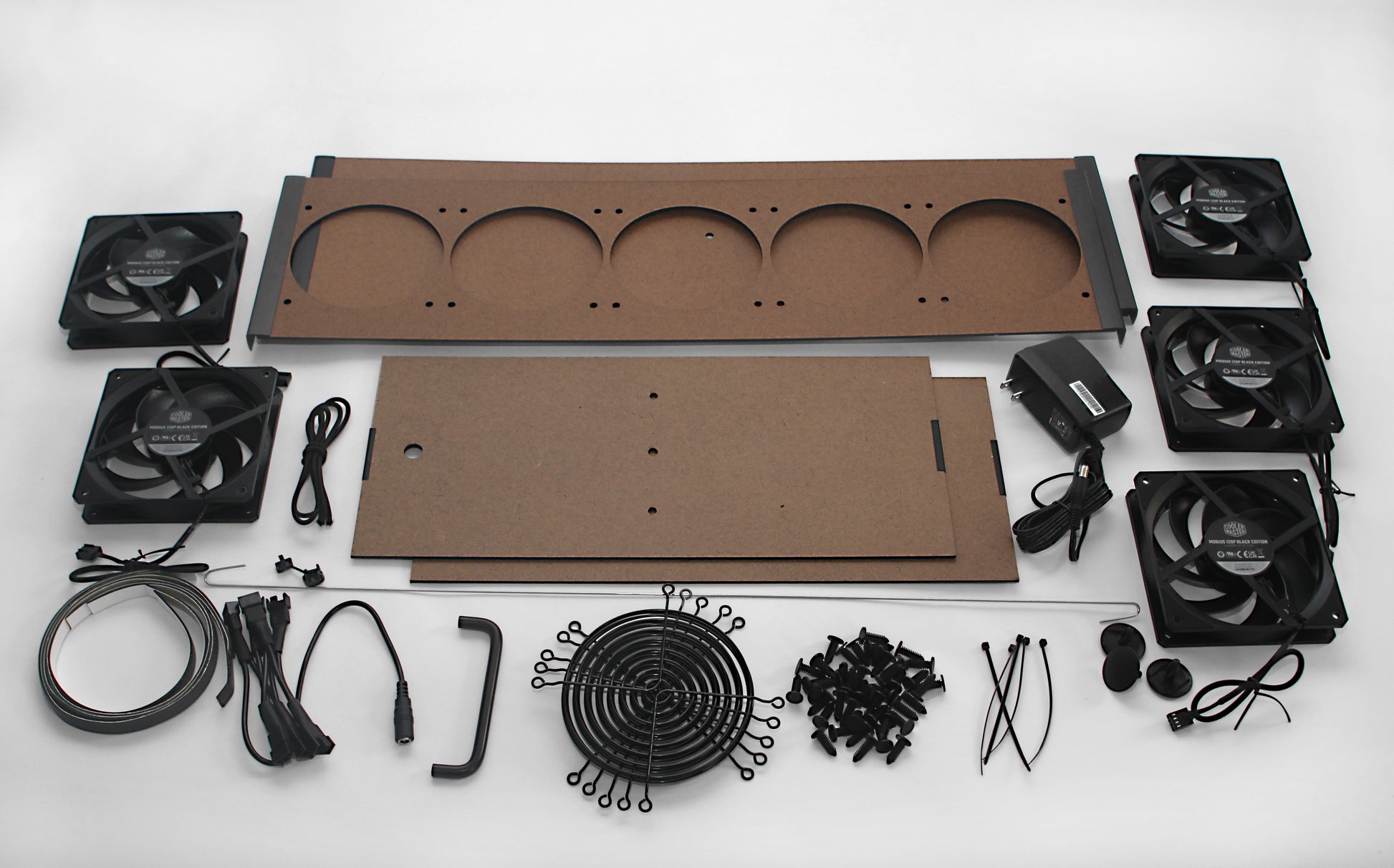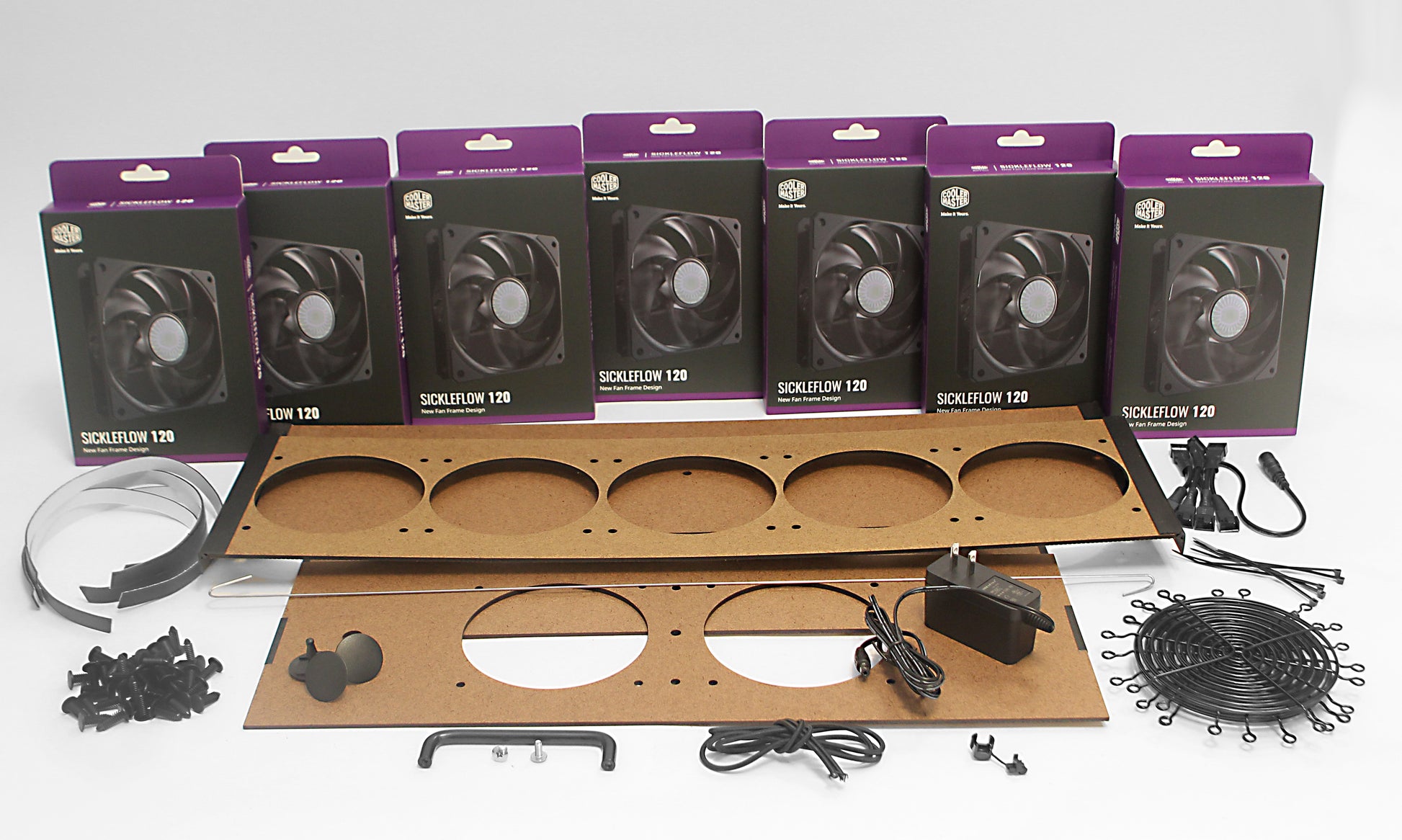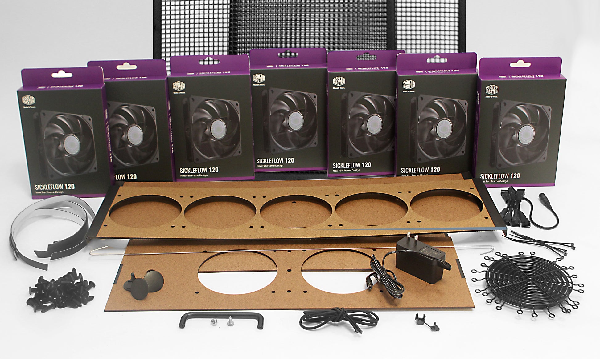 For the XL Ultra, Coolermaster provided us a special Black Edition of their industry-leading Mobius 120P 2400rpm fan. Seven of these Mobius 120P are thus able to replace and outperform the 9 SickleFlow of our former XXL 25x25" model with same noise level! Plus the Mobius loop-dynamic bearing is rated at 210,000 hours or 22 years MTTF (mean-time-to-failure) vs 18 years MTTF for the SickleFlow.