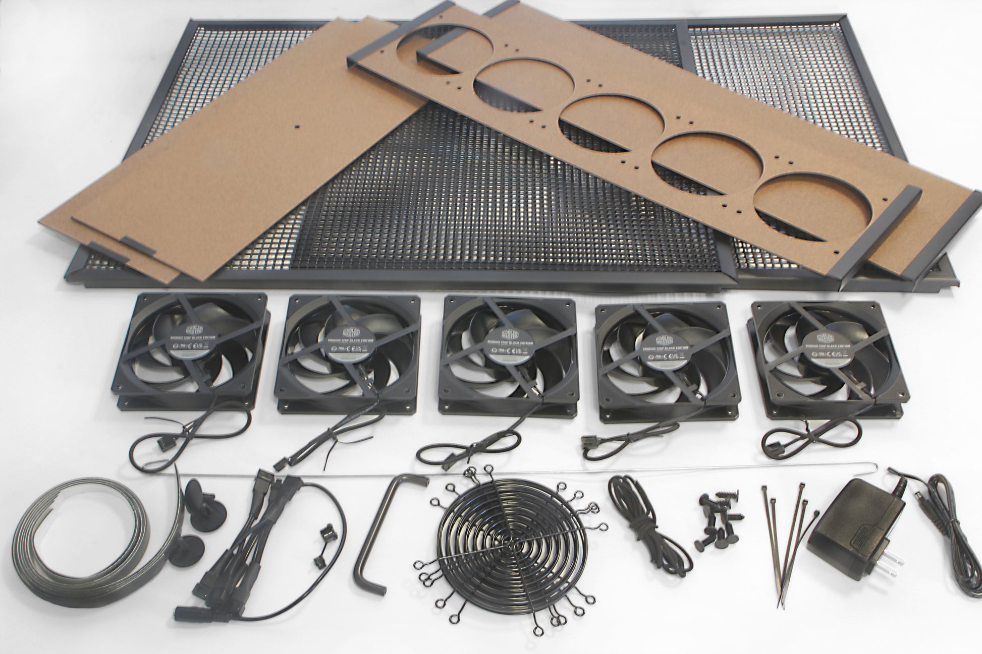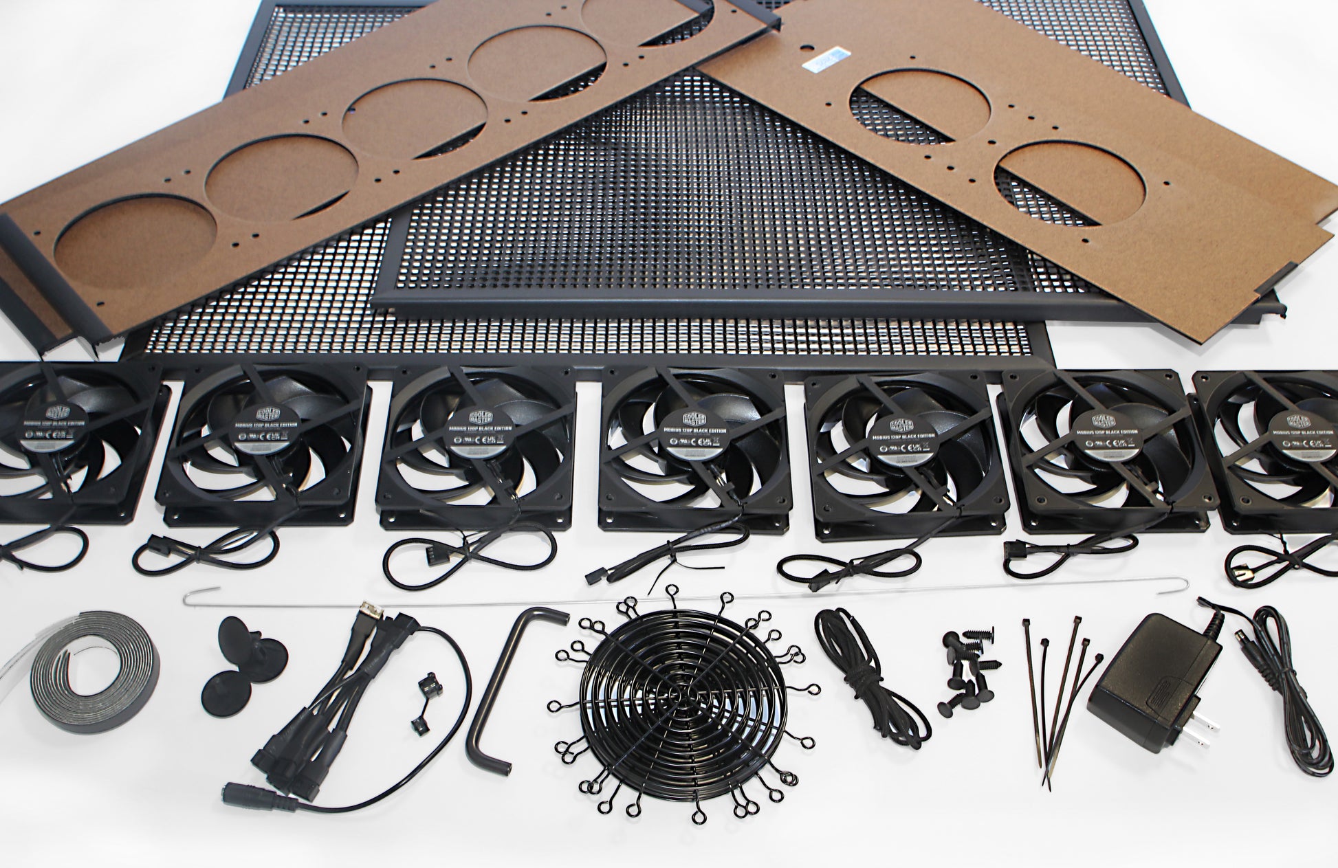 For the XL Ultra, Coolermaster provided us a special Black Edition of their industry-leading Mobius 120P 2400rpm fan. Seven of these Mobius 120P are thus able to replace and outperform the 9 SickleFlow of our former XXL 25x25" model with same noise level! Plus the Mobius loop-dynamic bearing is rated at 210,000 hours or 22 years MTTF (mean-time-to-failure) vs 18 years MTTF for the SickleFlow.
